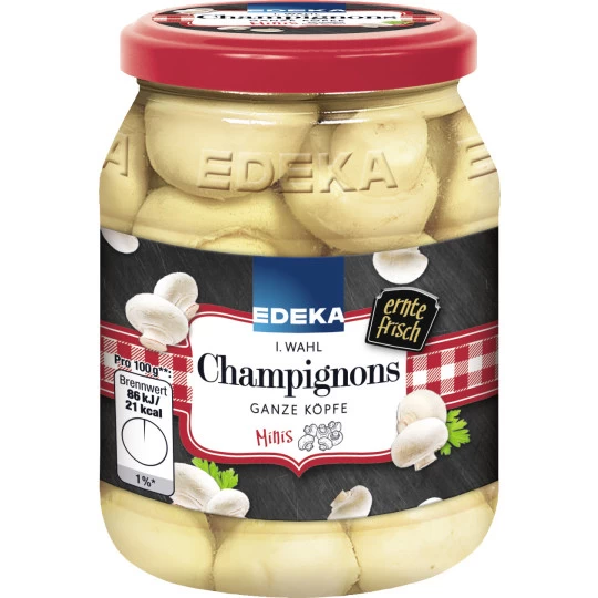 Zutatenverzeichnis: Champignons, Wasser, Speisesalz, Säuerungsmittel: Citronensäure; Antioxidationsmittel: Ascorbinsäure.