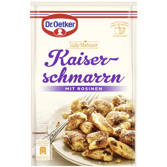 Er gelingt garantiert und ist schnell und einfach zubereitet. Die Mischung nur in 150 ml Milch einrühren und ein Ei hinzufügen, dann in der Pfanne ausbacken. In nur 10 Minuten ist der leckere Kaiserschmarrn von Dr. Oetker Süße Mahlzeit fertig.