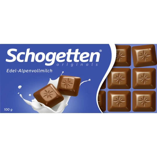 Stück für Stück leckere Edel-Alpenvollmilch-Schokolade.
