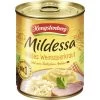 Zutatenverzeichnis: Heringsbällchen 50 % (HERING (Clupea harengus) 85 %, Paniermehl (WEIZEN), getrocknete Zwiebeln, HÜHNEREIWEIßPULVER, Pfeffer, MAGERMILCHPULVER), Wasser, Tomatenmark 7 %, Rapsöl, Zucker, Mango-Chutney (Zucker, Mango, Branntweinessig, Salz, Gewürze), Zwiebeln, Gewürze (enthalten SENF), Senf (Wasser, SENFSAATEN, Branntweinessig, Salz, Gewürze), Reisstärke, Branntweinessig, Verdickungsmittel: Guarkernmehl; gekörnte Brühe (Würze, Salz, Sonnenblumenöl), Salz, natürliches Aroma. Kann Spuren von SELLERIE enthalten.