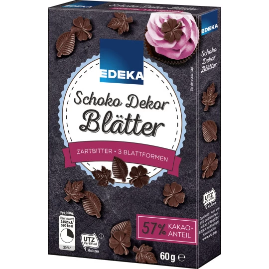 Zartbitterschokolade in Blätterform, Kakao: 57% mindestens.